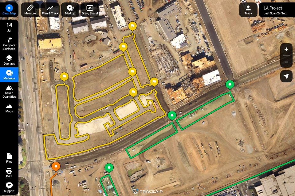 Save time by using TraceAir's measurement tools to quickly and accurately manage SWPPP on your jobsite.