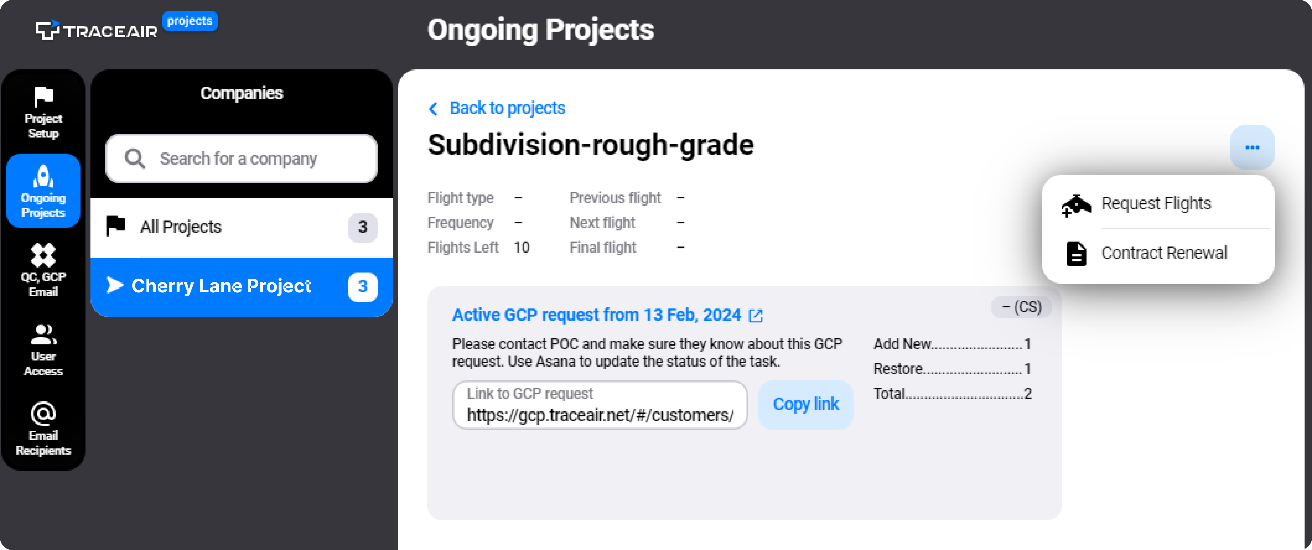 - GCP Requests Updates: Active GCP request is now accessible from Projects Portal. This new page shows desired positions of GCPs that can be easily shared with a surveyor.
