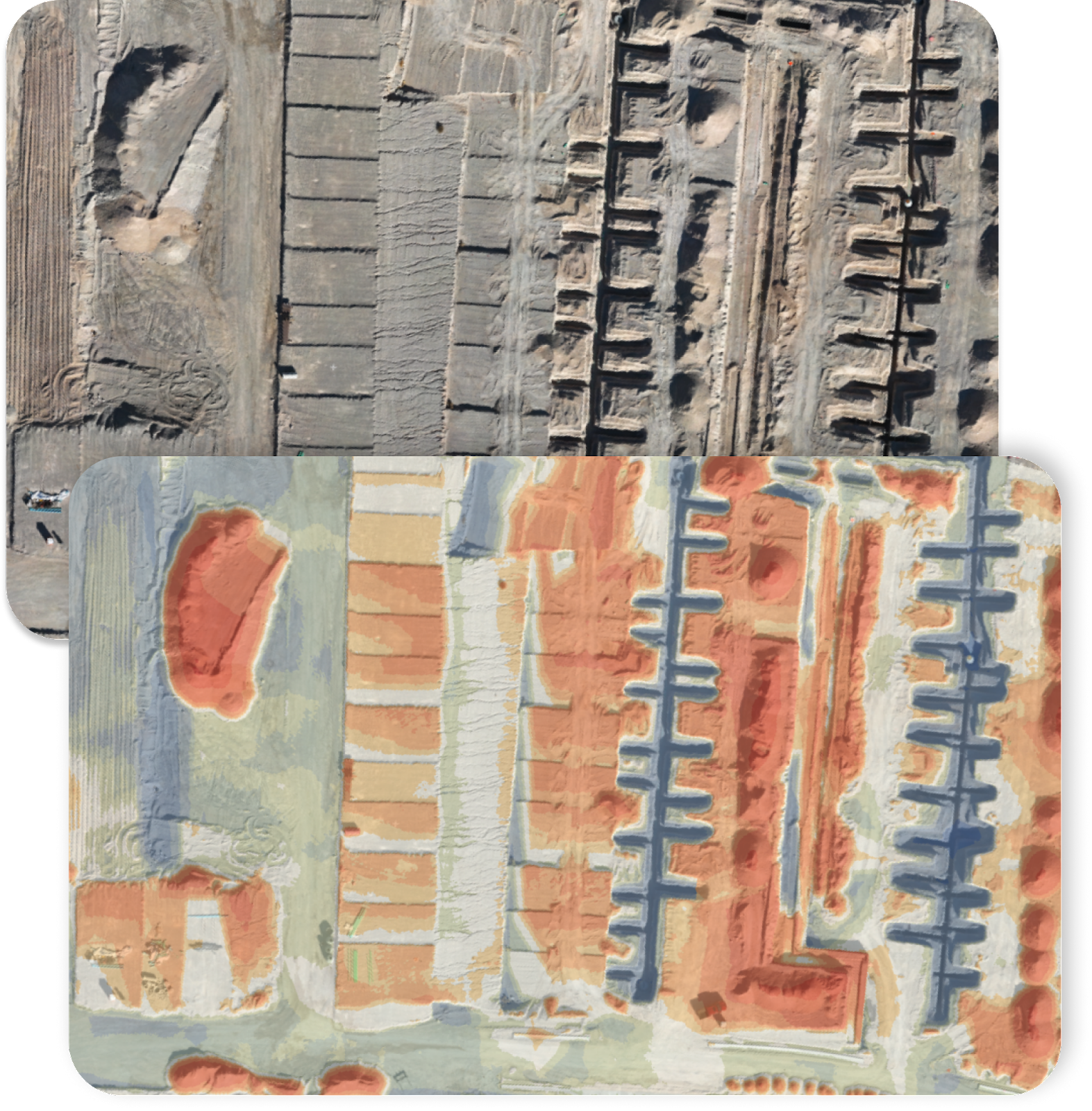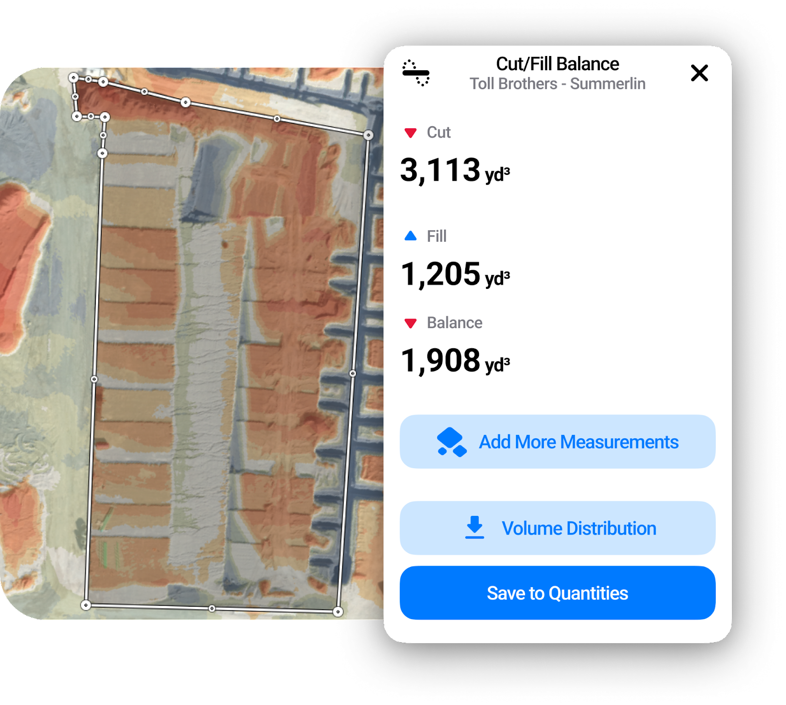 Traditionally, tracking and managing dirt movement involved manual surveys and calculations, which were time-consuming and prone to errors. With TraceAir, however, this process has been streamlined and optimized. Just one click activates the "Cut/Fill Balance" tool, which shows a heat map of the project. Areas in red need to be cut, areas in blue need to be filled, and areas in white meet design grade.